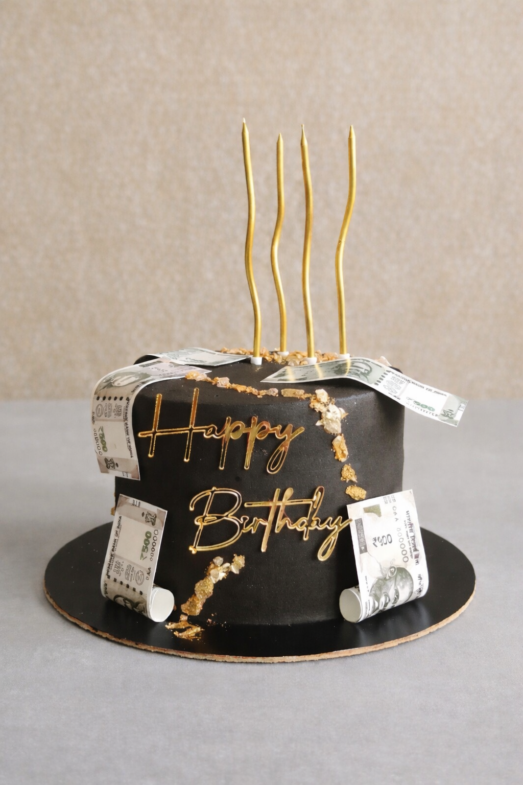 Celebrate in style with this elegant Luxury Birthday Cake for Men from Bakeoff. Designed with a classy black finish, golden accents, and money-themed decorations, this cake is perfect for men who love bold and stylish celebrations. The modern design with gold detailing and premium finishing makes it an eye-catching centerpiece for birthdays and special occasions.