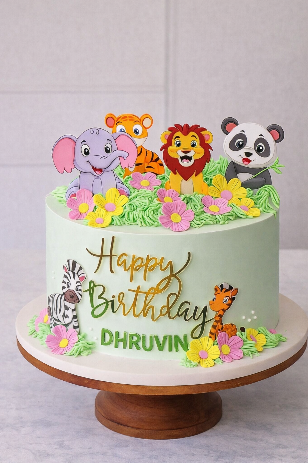 Make your child’s birthday celebration extra special with our adorable Jungle Theme Tier Birthday Cake from Bakeoff. Designed with cute jungle animals like a lion, elephant, giraffe, monkey, and zebra, along with greenery and playful decorations, this two-tier cake creates a fun and lively jungle adventure theme.